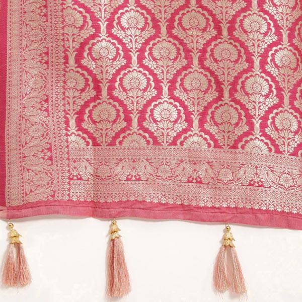 Pink Ethnic Motifs Zari Silk Cotton Banarasi Saree