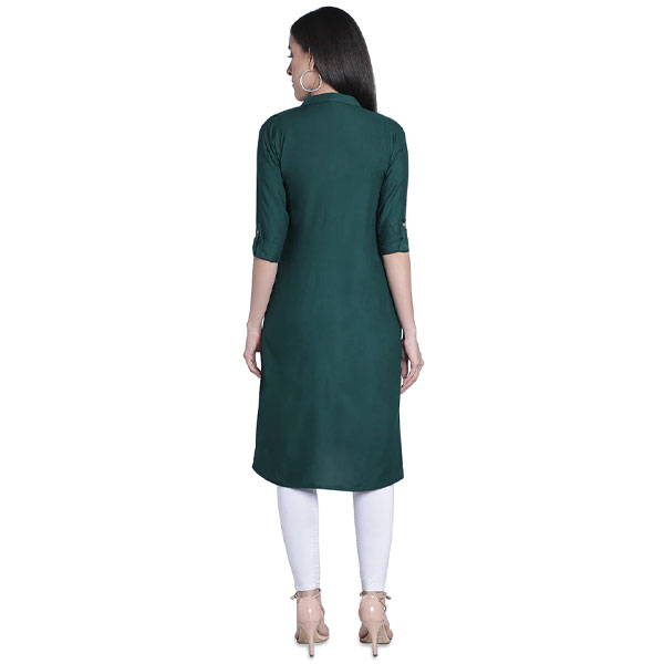 grab this beautiful kurta made up of rayon fabric featuring mandarin collar neck designs.